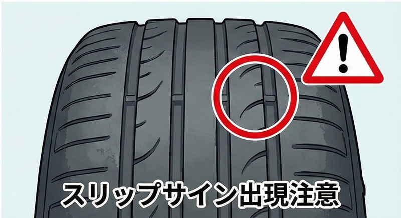 - フロント: あと1.3万km程度(総走行2.5万km)でスリップサインが出る。